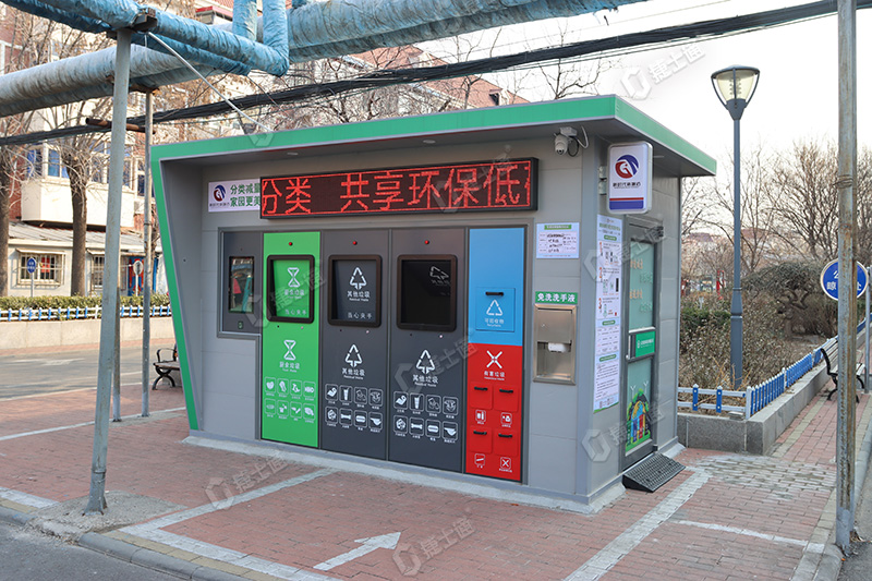 捷士通生產(chǎn)的本批次垃圾分類房采用了4個頭口的設(shè)計,配備了電子屏和積分系統(tǒng),旨在成為小型社區(qū)的垃圾處理中心