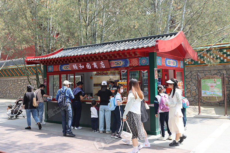捷士通作為移動(dòng)房屋廠家,為北京頤和園生產(chǎn)了一款與景色相互照應(yīng)的售賣崗?fù)?,展現(xiàn)出獨(dú)特的魅力