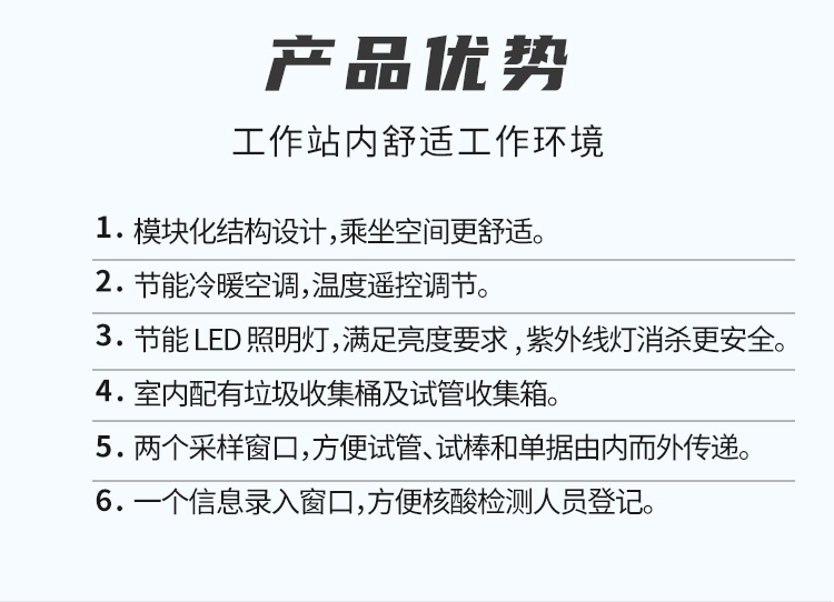 核酸采樣站擁有三大系統(tǒng):正壓新風(fēng)系統(tǒng),效率高 空氣過(guò)濾系統(tǒng),效率高 病菌消 系統(tǒng)