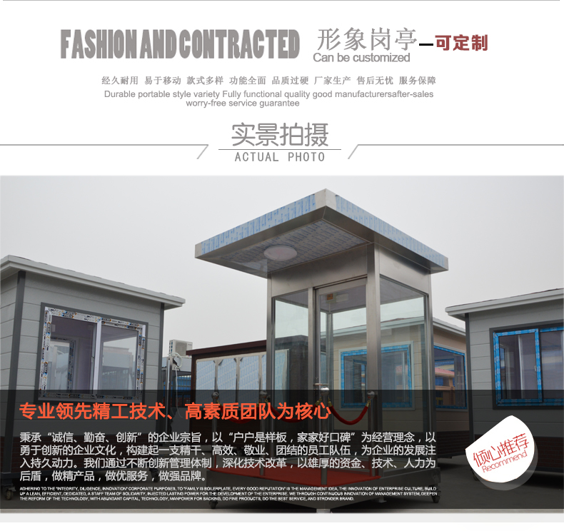 玻璃是透明的,視野好,玻璃崗亭用途廣泛,可用到小區(qū)保安,交通收費,以及街道治安等