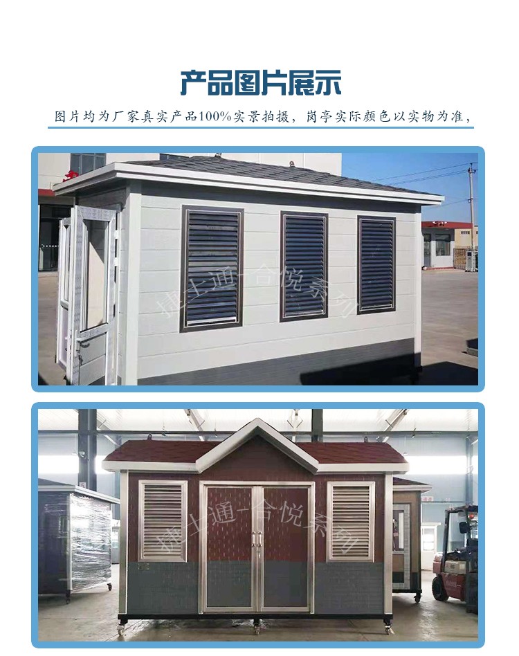 生產(chǎn)線包含:設(shè)備房、收費(fèi)崗?fù)?、高端崗?fù)?、警?wù)崗?fù)ぁ⑹圬浲?、移?dòng)廁所、智能吸煙亭、智能安檢亭、大型移動(dòng)辦公室、大型設(shè)備房等。