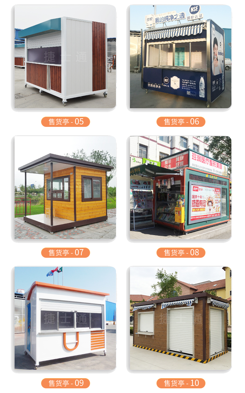 有適合景區(qū),旅游地方使用的木質仿古售貨亭,體現(xiàn)景區(qū)特色,服務景區(qū)經(jīng)濟;有適合廣場和商業(yè)使用的現(xiàn)代型售貨亭,美觀時尚!