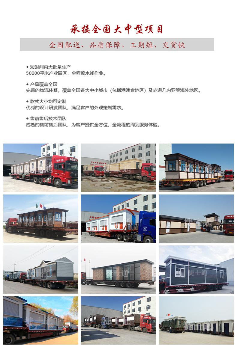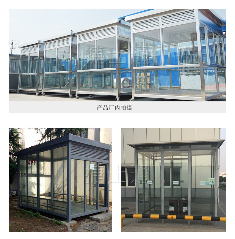 標(biāo)準(zhǔn)配置:屋頂鍍鋅板靜電噴涂,PVC吊頂,墻體玻璃材質(zhì)(鋼化、中空、有色玻璃可定制),電箱、開關(guān)、插座、暗敷電線、照明燈、煙灰缸等。可加配:空調(diào)等。