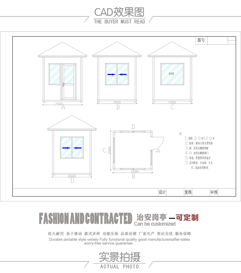 4.房頂:彩色油氈瓦、外加噴漆鍍鋅板、采用特殊防水處理、杜絕漏雨