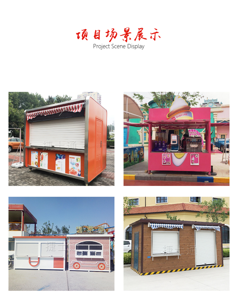 景區(qū)可根據(jù)風(fēng)格使用不同顏色的售賣亭,可以增加客戶好感度,增加售賣量,也可以起到吸引客戶的作用,所以顏色鮮艷是非常重要的??!