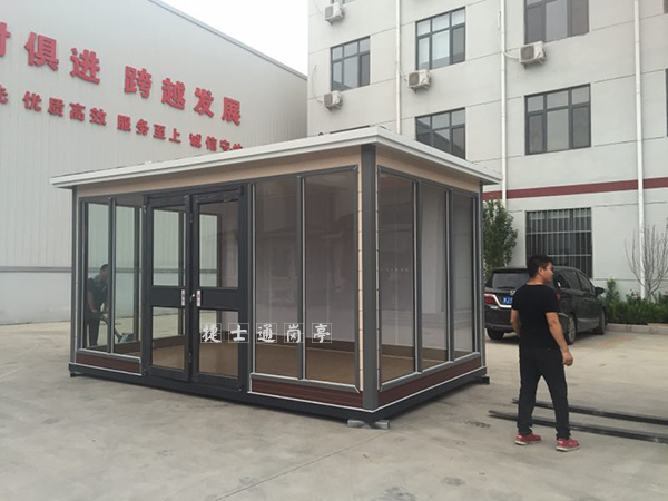 此款崗?fù)な墙菔客◢復(fù)S家2018年8月份新研制出來(lái),別看是全玻璃的崗?fù)?,但是他是非常緊密的方鋼龍骨焊接組成,然后由鋼化玻璃做的主面板,其他部分和后墻體采用的是金屬雕花板材質(zhì)。地板采用的是防腐木地板,整體透明度很高,非常適合高速服務(wù)區(qū)使用,而且高速服務(wù)區(qū)已經(jīng)采購(gòu),并開(kāi)始使用