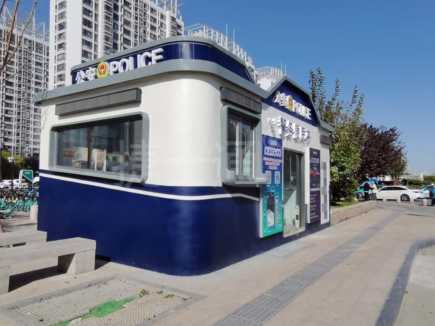 在公交處設(shè)立值班室成品房,可加強治安力度,提升群眾生活安全質(zhì)量,顏色采用警藍(lán)色和白色,整體莊嚴(yán)肅靜,深入人心 。