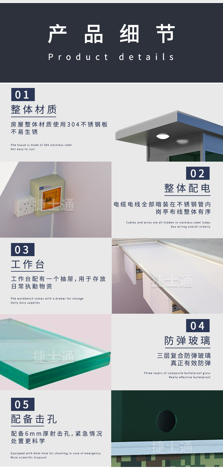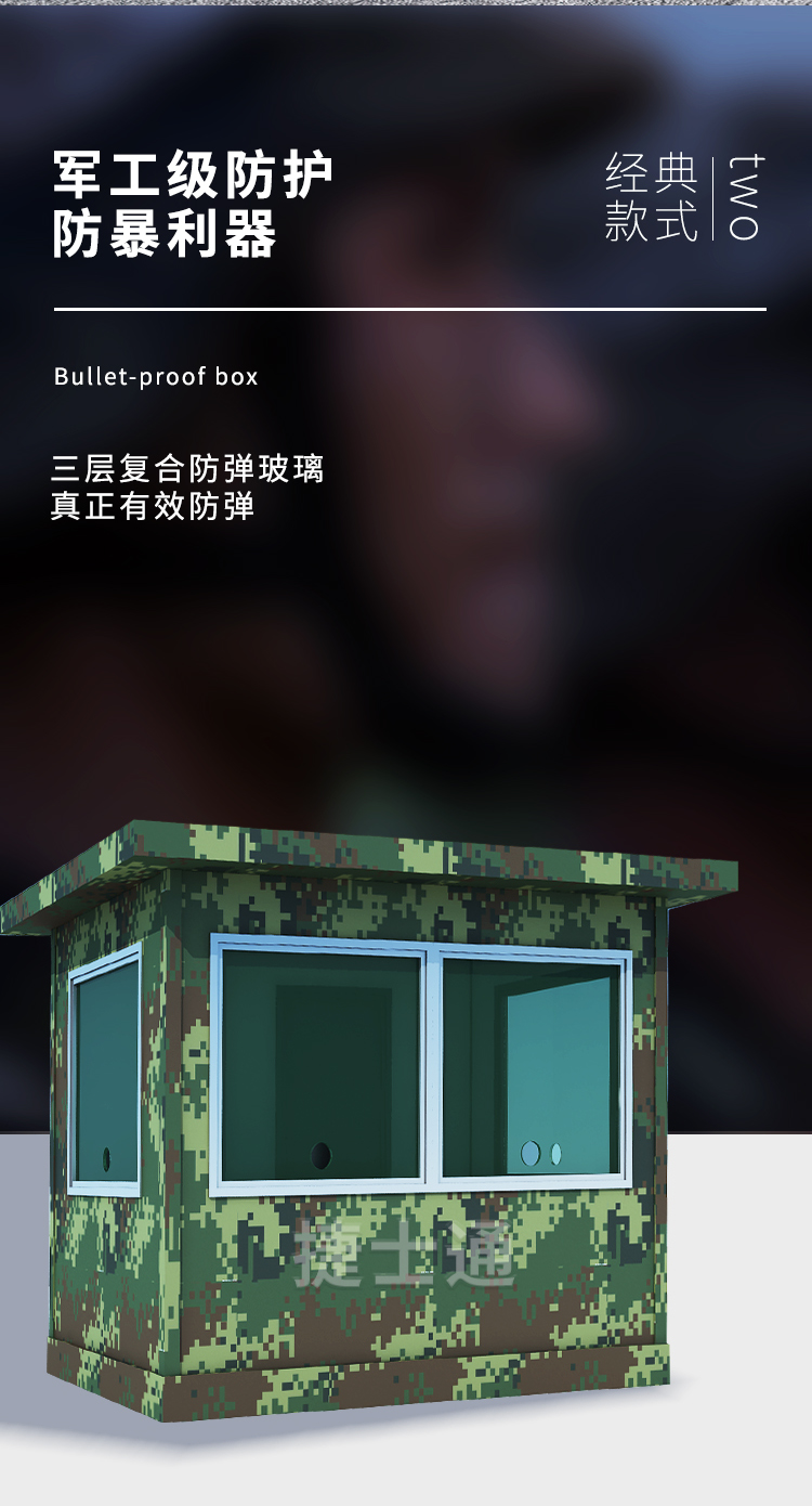 采用了防彈鋼板及防彈玻璃,有效保護(hù)崗?fù)?nèi)執(zhí)勤戰(zhàn)士的安全;崗?fù)ど显O(shè)有射擊孔,在滿足防彈功效的同時(shí),又方便戰(zhàn)士在崗?fù)?nèi)使用 ;頂部有活動(dòng)頂窗鋼板可以打開(kāi)進(jìn)行通風(fēng)換氣。也可根據(jù)需求,調(diào)整門的位置及開(kāi)門的方向和射擊孔的位置;崗?fù)ぴO(shè)計(jì)合理。